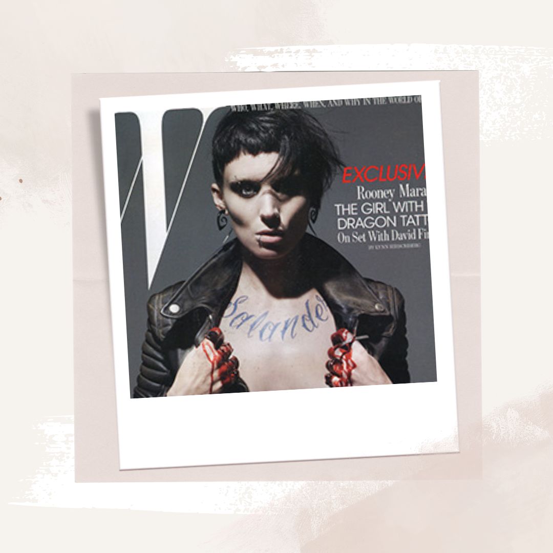 TEMPTU custom tattoos transform actress Rooney Mara into Lisbeth Salander for the cover of W Magazine.