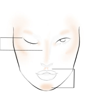 Hold the TEMPTU Air 3-4 inches away from your face (come in a little closer) and pull down gently on the SoftTouch Control moving in a back and forth "C" motion from the brown bone to the top of the cheekbone.
